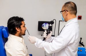 Nasopharyngolaryngoscopy is a diagnostic medical procedure that uses a flexible fibre-optic endoscope to visualize the structures inside the nasal passages, including the sinus openings, the larynx, and the vocal cords. We use the state of art Pentax endoscope for this procedure, and can also be viewed in real time video monitor.